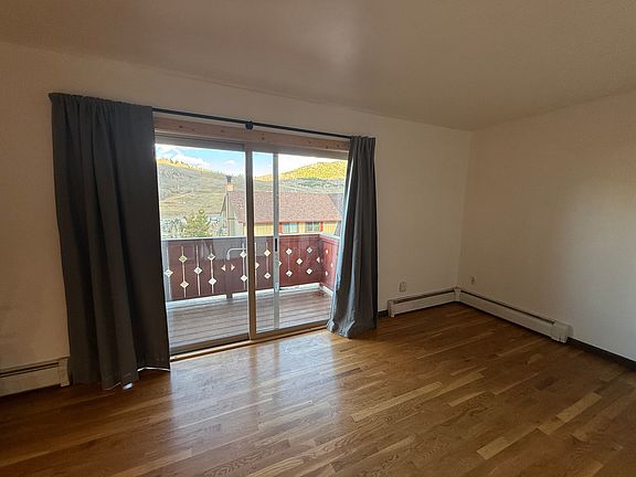 This Condo is centrally located to multiple world class ski resorts, hiking trails, bus stop and the town of Dillon. With an open floor plan, this one-bedroom one-bath condo feels spacious and cozy. Nestled in a quiet neighborhood, the balcony offers beautiful views of the mountains, comes with a dining room table and is ready for its new tenants to start enjoying. Come find your piece of the mountains in Dillon CO. This is a year lease available as soon as October 25th for $2000 a month including everything except cable and internet. Parking for two cars available, well behaved pets are allowed, no smoking please. We ask for first, last and security deposit upon move in.