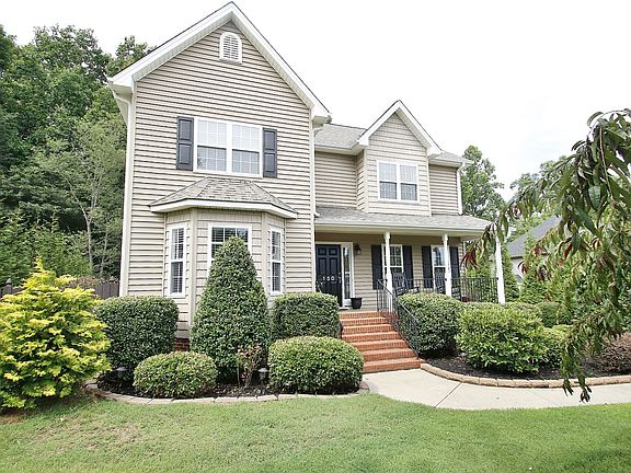 Popular basement design w/inviting front porch. First floor is spacious w/formal dining room, cooks kitchen w/ s/s appliances & pantry, family room w/gas log fireplace & built-ins w/access to a large deck overlooking the private backyard. Second level has 4 bedrooms all with fans and 2 baths. Flex area in basement is ideal as office, playroom & more. Extensive landscaping, fenced yard, smooth ceilings, security sys, lots of hardwood flooring, jetted tub in master & more. Comm pool & low county taxes.