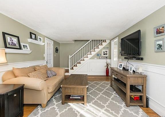 Well maintained colonial featuring spacious updated eat-in kitchen, hardwood formal dining & living room with fireplace, tiled sunroom off of kitchen with sliders leading to large deck and flat yard, half bath on first floor, hardwood throughout both bedrooms on 2nd floor, full bath, partially finished lower level with potential for a 3rd bedroom, right across the street from the YMCA, easy access to highways and shopping.