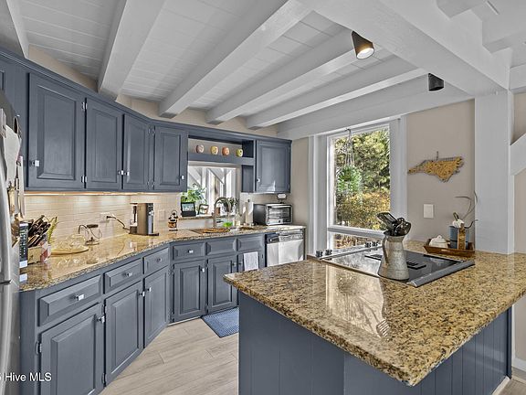 throughout the home you will find architectural charm in the beautifully crafted wood ceilings and solid beams which add warmth and character to every corner of the home. The expansive living space is open and airy, perfect for entertaining or enjoying a quiet evening surrounded by nature. The spacious floorplan includes 3 bedrooms and 2 spacious bonus rooms and tons of storage throughout. Large windows, expansive decking and thoughtfully placed views immerse you in the lush, wooded surroundings. This home is move in ready and has been meticulously maintained and updated for immediate enjoyment, allowing you to focus on making it your own. Recent improvements to the home include: All new flooring throughout the home, hardwood treads on the stairs, entire home painted (agreeable grey), kitchen cabinets painted, replaced all light fixtures inside and outside, new doors including French doors, decking replaced with Trex decking and painted railings, new vanities in bathrooms, and expansive landscaping.