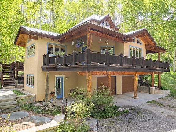 This home has outstanding views, is close to historic Telluride and the Town of Mountain Village with its skiing in the winter, golf in the summer. Located in the quiet Telluride Ski Ranches on 1.43 acres, this 3 bedroom/3.5 bath home enjoys drop dead gorgeous views of the Wilson range in the winter, in addition to San Sofia range views. Expansive decks, mature landscaping, soaring vaulted timber-frame ceilings & a 2 car garage make this an enjoyable home for all seasons. The location allows for ease of access, without the necessity of driving high up into the Ski Ranches. The home has a very private serene location. The driveway is a stunning, beautiful private drive shared with 1 other home