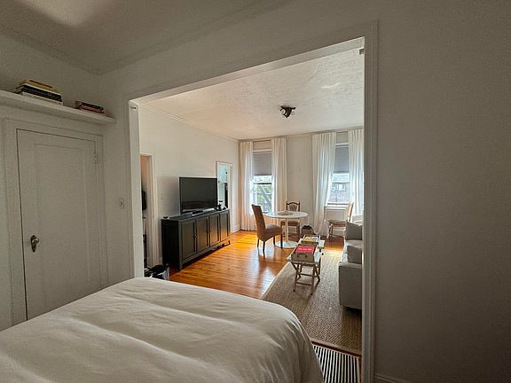 SUPER COOL VINTAGE Junior 1 Bedroom Apartment in the sweet spot of Greenpoint on Franklin St., 1 block from G train. (Note: This is not for modern high-rise lovers). This is a 3 story brick historic landmark building. High ceilings. Funky but nice wood floors (not vinyl plank). Old style layout, original "Junior 1-BR" apartment, meaning it only has an ALCOVE bedroom (fits queen bed) which is entered through an "archway", no door. BR has two large clothes closets and space for a dresser. The apartmnent has a dignified, big apartment layout: You enter through a proper foyer (with a closet to hang your coat) which opens to a wonderful square living room with two large windows. The kitchen is in an entirely separate room with a large window facing backyard neighbor gardens. The 1940 bathroom (shower/tub) is skylit and has classic sea green and black tile . The sunny apartment is on the third (top) floor in a walk up in a quiet, sane, charming building with only 4 units. Location: 150 Franklin Street. 1 block to subway. 1 block to organic grocery store. 1 block to laundromat, pilates, yoga, clay studio. Steps from Maman bakery cafe, Van Leuwen Ice Cream, Kettl. and The Pencil Factory bar. 4 blocks to Ferry (7 minutes to midtown). 2 blocks from Transmitter park and the river esplanade. 1 year lease beginning August 1, 2025. $3575. NO PETS. No video available. If you want to hear back, or see the place, PLEASE DON'T SIMPLY CLICK THE AUTOMATED REPLY SYSTEM ON THIS PLATFORM. Please text me a short note. State name. Tell me very succinctly about your employment situation, and whether it's for 1 or 2 people. FYI the photographs I've posted come from various previous tenants who have lived in the unit, or the one across from it. NO REALTORS!