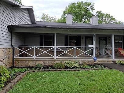 Open floor plan with living room /dining room combo. Large fireplace in the living room. Kitchen appliances included. Hardwood laminate flooring. Upstairs back deck. Downstairs has large wood burning fireplace. Wet bar Central heat/air. washer/dryer included. Large driveway for parking and garage in back of condo.