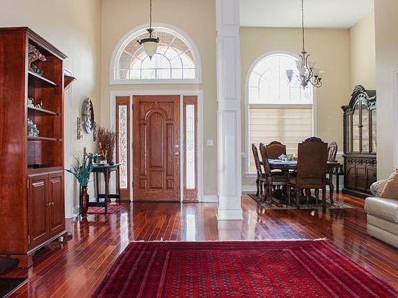 Arrive to this well-maintained move-in-ready home at the end of a cul-de-sac with HUGE back yard running up to the lake and secluded from the neighbors. Wrap-around back porch, with screened-in section overlooking the lake and re-enforced to support the weight of a jacuzzi, is the perfect location for a glass of wine, morning cup of coffee or entertaining. Barbecuing made easy with built-in gas lines all ready for grilling along with motion sensing outdoor lights and low voltage back porch and backyard dusk-to-dawn lighting. Lush green lawn maintained with the entire front and back yard irrigated by a 20+ head zoned sprinkler system that draws water from the pond at no additional cost. Step inside to find custom installed Rev-a-Shelf kitchen cabinet storage system.