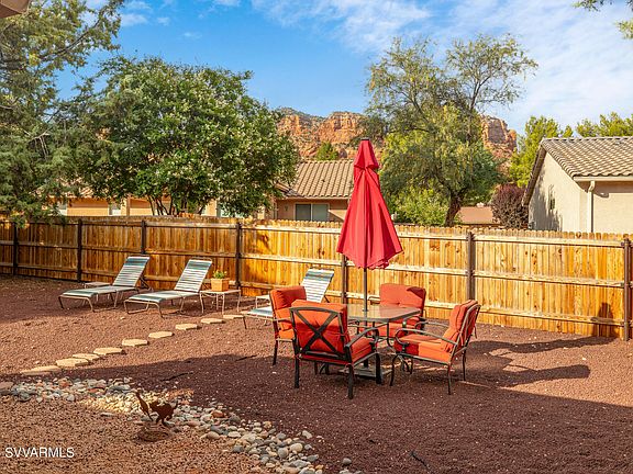 Single level 3 bedroom home with large fenced backyard . Enjoy big shade trees and red rock views from your covered porch. Come live in the Village of Oak Creek, 7 miles south of Sedona, Arizona, and 110 miles north of Phoenix, Arizona. Surrounded by spectacular red rock formations, pinon pine and juniper forests. The community offers a beautiful 18-hole Championship Golf Course designed by Robert Trent Jones Sr. and Jr., a bistro-style restaurant, recreational facilities including courts for Tennis and Pickleball, a children's playground, lending library, and banquet facilities. Close by are multiple hiking trails.