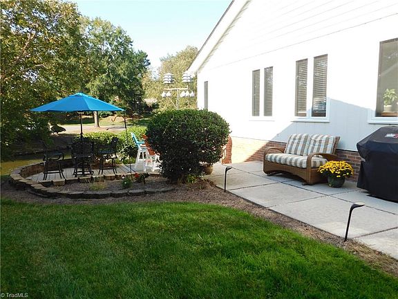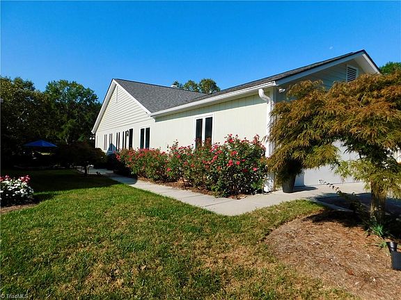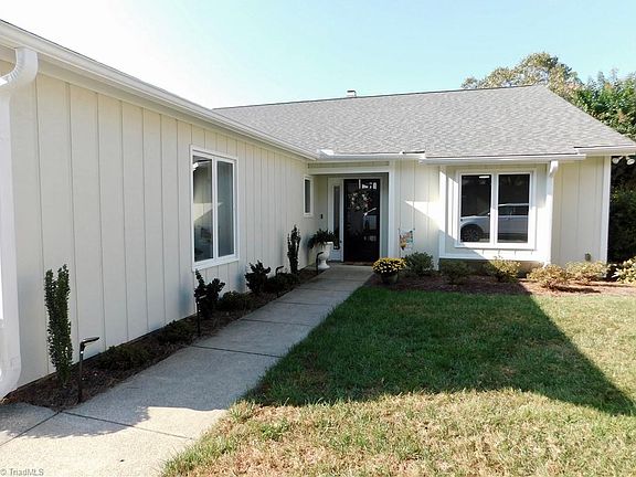 Come see this rare find in the gated community of Bermuda Run Country Club with one level living and a 2 car garage! When you arrive you will find attention to detail in some updates including a 2021 HVAC and hot water heater and the roof replaced in 2018. The exterior was freshly painted in 2021 and full attic insulation and can light covers installed throughout. The master bedroom boasts a large bathroom with an elegant jetted tub and a magnificent walk-in wardrobe with drawers and shelving. Other extras include a sink in the laundry and shelving in the garage. Outside you will find beautiful brick pavers that have been relaid surrounded by manicured professional landscaping. Enjoy a glass of wine on the private, inviting patio that overlooks a serene pond adorned with an elegant fountain and view of the green at hole #17 . Rare and waiting for you with all the comforts and amenities that Bermuda Run offers!
