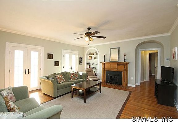 LOTS of UPDATES throughout. Kraftmade Kitchen Cabinets, Corian Counter tops, Roof in yr 2009. Remodled baths. New Sun Room & Deck yr 2013 measures approx 38 x 14' overlooks private fenced yard, that backs up to woods. Walk-Out Basement offers 3rd Bdrm with 2nd Fireplace, Rec Room, Half Bath, Laundry. CHARMING HOME LOADED WITH CHARACHTER & Arch doorways, French Doors & hardwood floors. Come see inside today.