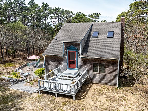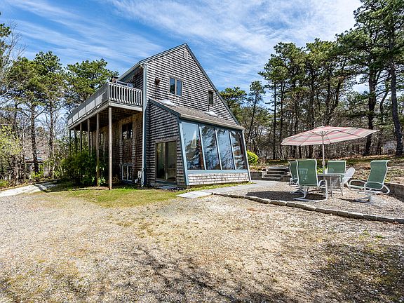 This home is part of the Herring Rise Association and has access to the association beach at Herring Pond! The home was built as a retreat for the current family that owns it and has been used as a second home ever since. Set on a knoll with seasonal peeks of the sunsets & marsh this is the perfect spot for your vacation or year round getaway. Located In between First Encounter & Boat Meadow Beach for gorgeous sunsets, swimming, boating, kayaking, fishing & more! This sweet home offers a spacious upside down design with an open kitchen, living & dining area all on the second floor with a half bath, A/C, renovated kitchen with granite counters, a deck to enjoy the treetop views & sunset peeks! On the first floor are 3 spacious bedrooms one with a fireplace, a beautifully renovated full bath and a wonderful sunroom too! The full basement could be finished it offers full sized windows and is accessible through the sunroom so it is an easy in and out. Pretty outside sitting areas including a patio and a private deck on the backside of the house, there is more space to enlarge the yard, plant more gardens or add a shed! Easy to show!