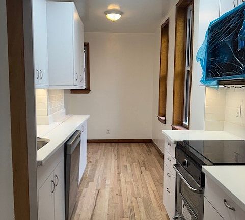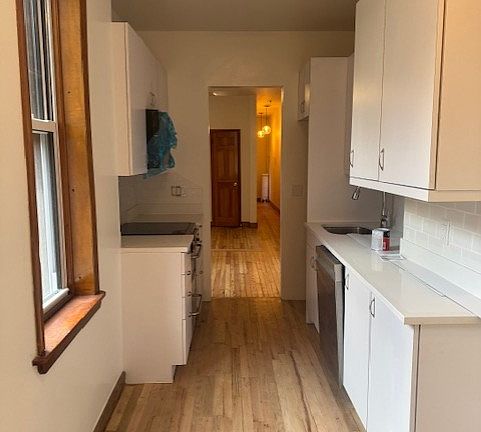 Great deal on this well located two bedroom. One large bedroom, one smaller bedroom. High ceilings, beautiful wood floors. Newly renovated and sunny eat in kitchen. Stone countertops, all new appliances including induction stove and microwave. Ceiling fans. Quality building, plenty of light and charm. 3rd floor walk up. . Laundry and bike storage available. Available October 24. No dogs please, no smoking.