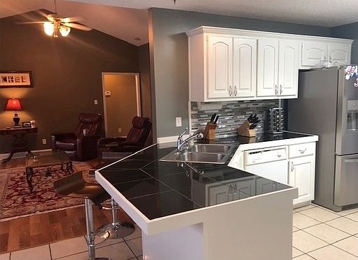 Three-bedroom, two bathroom all electric home with a split floor plan. Laminate wood flooring throughout except the laundry room, kitchen, and bathrooms, which are ceramic tile. Kitchen has a tile backsplash and granite tile countertops with adjacent dining area. Master suite has two walk-in closets. Master bath has a Jacuzzi tub and separate shower. Laundry room is adjacent to the kitchen. Spacious living room features a fireplace and flat-screen television. New Metal Roof New laminate flooring throughout