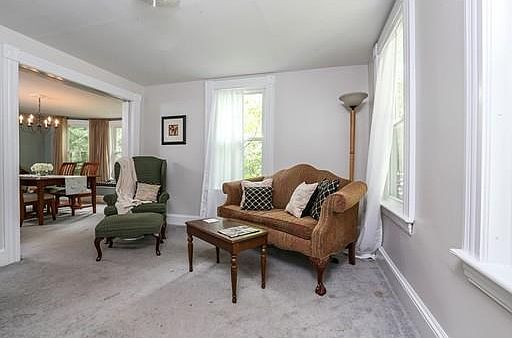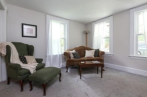 WANT AFFORDABLE LIVING a short distance from downtown? Perfect yard for outdoor play, picnics and friends. Front porch greets you. Energy efficient front door plus newer textured vinyl in Slate Grey. All the charm of 1907 including bull's eye moldings, stained glass, built ins, window seat with custom cushions and freshly painted in many rooms. Kitchen completely redone for super functional casual dining and sunroom (doubles as a toy room too) Entry hall, Classic dining room with custom window seat, built ins perfect for Thanksgiving gatherings. Stained glass feature window lights the stair case to 2nd floor. Perfect place to start out. Bus to Boston stops just down the street, the Y' recreation center is minutes away. Basement walkout to yard. Wooded to rear offering plenty of privacy. This house is meant to enjoy the simpler things in life. Natural gas heating, cooking and dryer. Not perfect but perfectly charming. Hardwood floors under carpet 1st floor. BRAND NEW ROOF! BEST BUY!