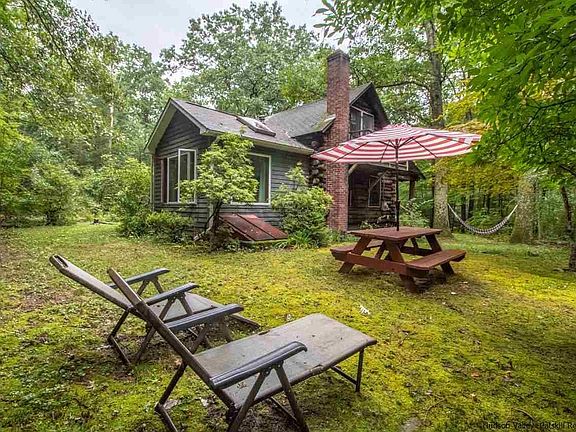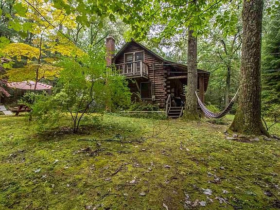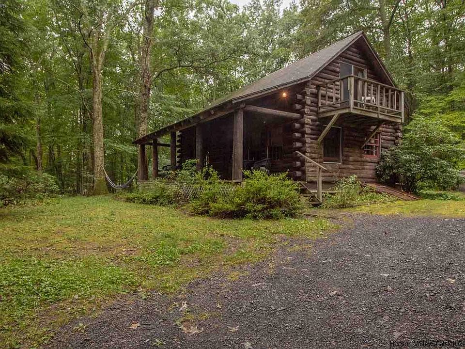 If you are looking for the perfect year-round house, or weekend retreat, this is your home. This adorable log home situated on almost 4 acres has been updated with artistic modern touches throughout. Three bedrooms upstairs, with their own balconies and a fourth bedroom downstairs with large windows which bring in lots of light and nature; feels like you are outside. Two full baths, one up, one down have a spa-like feeling. There is enough room for everyone to have a rocking chair on the front porch to enjoy the natural surroundings. BBQ, play, entertain, this property offers it all. Come take a look; you will not be disappointed. Very private, peaceful and serene.