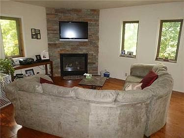 This home is casual yet sophisticated and truly inviting! It can be your own Chalet in the woods! Features include cathedrial ceilings, Lg master suite w/ sliders to private deck, beautiful floor to ceiling stone fireplace w/ open floor plan. Lower level offers full living space with equipped kitchen , LR, Bath, laundry and bedrooms! The home sits on 13.3 acres of private wooded land with amazing views of the Kiski River and FREE GAS! There is also a stand alone building for boats, cars or a business!