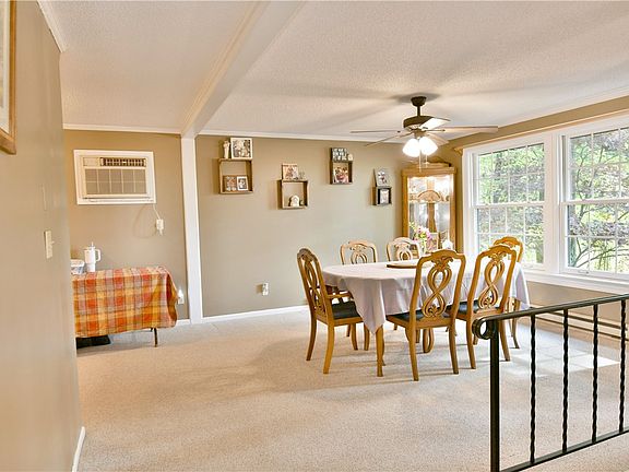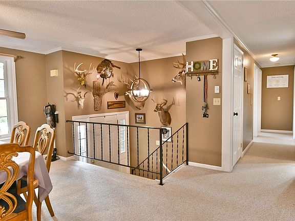 Tucked away in the natural privacy of a tree lined lot, this stunning Transfer bi-level home brings two floors of beautifully updated living space that's sure to sweep you off your feet! Through the front door, a tall foyer awaits with its stained wood flooring and wrought iron trimmed carpeted stairway. The great room enjoys the midday sun as natural light spills through the space. A galley kitchen is around the corner with charming brick accents and custom cabinetry. A serving window looks on towards the rear living room with its window lined walls and side patio access. Opposite the kitchen, the main hall sweeps past a tastefully updated full bath. Three inviting bedrooms bring bright colors and personal closet space. The master includes its own private half bath. Downstairs, entertainment is a breeze with the engaging bar and lower family room. The brightly lit rec space complete the lower floor along with utility access and multiple storage possibilities.