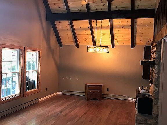 3/2.5 in excellent condition on heavy flowing Pond Creek located on almost a ½ acre, Stone fireplace, 22 foot high vaulted T&G ceiling in living and dining room, New solid Oak hardwood floors throughout house, New Roof, poplar bark accents, butcher block counter tops, new double hung widows in front, Stainless steel appliances. Renovated in 2021. Plenty of parking(upper and lower driveways), Mountain views. 2 decks on creek,enclosed porch, barbeque grill. Pond creek trail is located across the creek,Full Beech Mountain Club Membership available: Private Ski Lodge, private parking with direct access to the slopes.