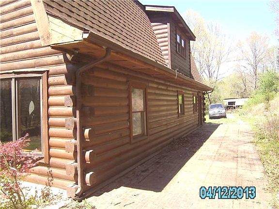 Lovely secluded 2 story log home nestled on a hilltop with large covered front porch & beautiful views! Large kitchen w/island & lots of cabinets! Room under front porch for workshop or storage. Selling "AS IS" "WHERE IS". Buyer to verify all info!