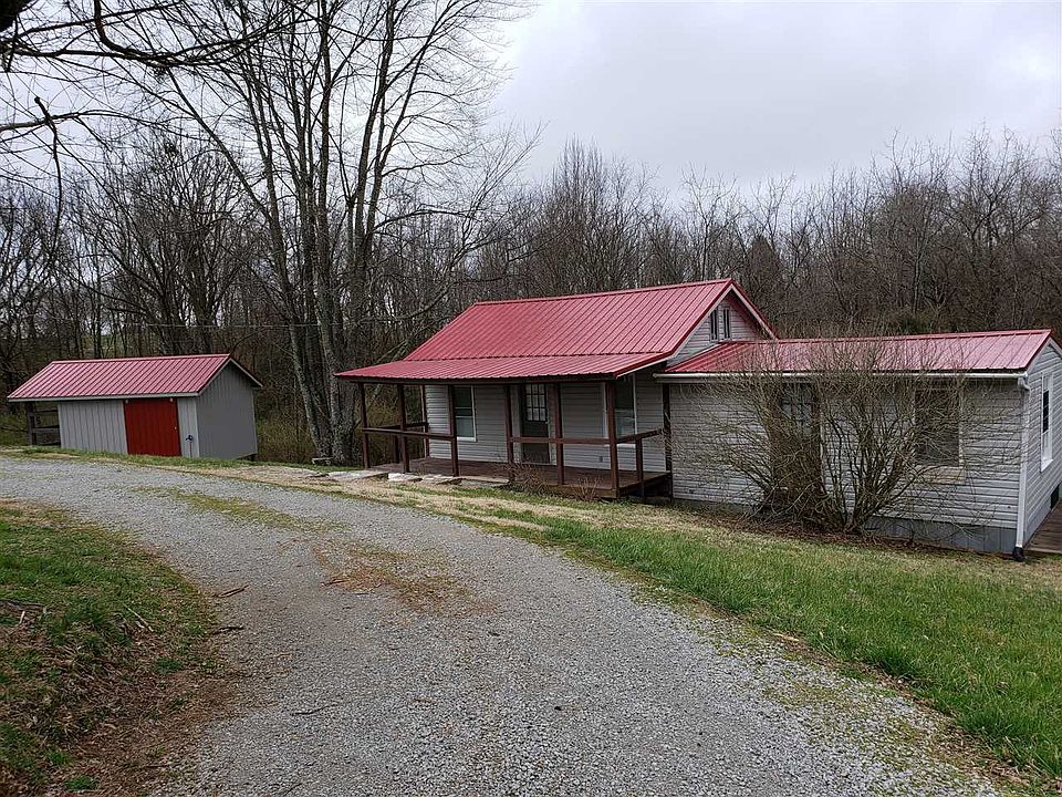 If you have been looking for that perfect starter home or investment property, look no further. This two bedroom, one bath home is located just a few miles from downtown Bardstown and has been recently updated. Kitchen has new cabinetry and countertops and includes range and refrigerator. Adjoining laundry/utility room includes stackable washer/dryer combo. Extras include a bonus room and nice size adjoining deck, covered front porch and large storage building all overlooking a beautiful rustic lot. Home has vinyl siding and metal roof. Call today and schedule your viewing of this super-charming home!
