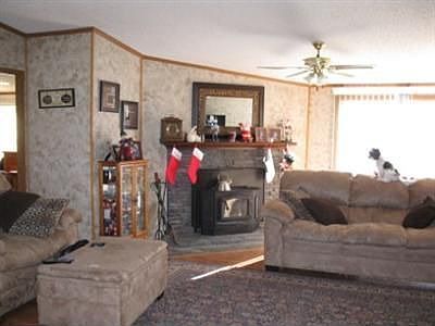 Very spacious, tastefully decorated rooms. The living area and kitchen are enormous. This property has been kept updated and maintained very nicely. There is a wood burning fireplace insert that will warm the whole house. There are decks on the front and back plus a storage shed. The lot is large and shaded by beautiful, old growth native trees. Where else can you get this much space for this amount of money?