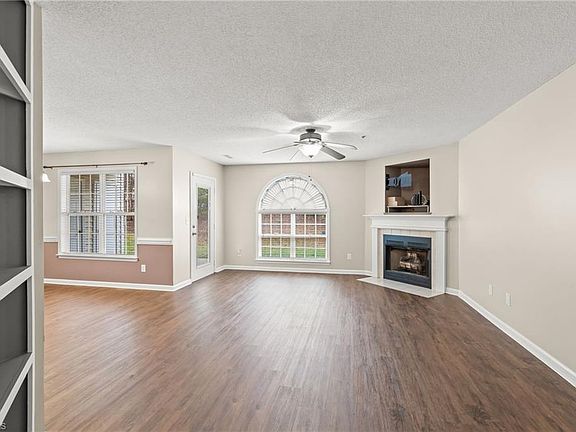 Main level condo offering 2-bedrooms and 2 full bathrooms providing a move-in-ready experience. Open floor plan kitchen, dining and living room with a gas fireplace to keep things warm in the winter. Spacious primary with an en-suite bathroom and generous sized closet. Full sized laundry room off of the hall with shelving (washer and dryer included). Enjoy the outside patio that is tucked in the back of the building with a lovely wooded view and storage space. This home is located in a convenient location of High Point near HPU, shopping, dining, parks, highways, and public transportation.