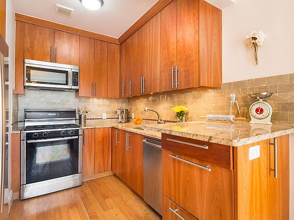 Located on a tranquil tree lined street in the heart of Greenpoint this picturesque boutique condo is built to maintain the architectural integrity of the historic neighborhood. This well designed one bedroom home features hardwood floors throughout, an in unit Bosch washer/dryer and a sun filled southern facing open concept living space with sliding glass doors that lead to your very own oversized private terrace. The kitchen features a breakfast bar with granite counter tops, stainless steel appliances and abundant custom cabinetry. The luxurious tiled bath is complete with double vanity sinks and a deep soaking tub. Additional features include an elevator, private deeded storage unit and a furnished common roof deck with gorgeous 360 panoramic Brooklyn and Manhattan skyline views. A short walk to the subway and Greenpoint's East River Ferry, Franklin Avenue's hip boutiques, restaurants and cafes as well as the conveniences of Manhattan Avenue you have everything you need right around the corner. Sandwiched between Williamsburg & Long Island City, Greenpoint, with its idyllic setting and quick commute to Manhattan is the perfect place to call home. *First Open House this Sunday, May 8th 12:00pm-1:30pm*