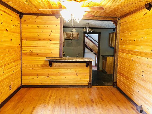 Check out this vinyl sided home with an ALL cabin look on the inside! Home is located on Nolin Lake where you can sit and enjoy the water view from the back deck area. Home has 3 bedrooms 1 1/2 baths along with multi use rooms. There is an additional room that could be a 4th bedroom or an office area. Home has a very large living room with a fireplace and a family room with an additional fireplace. There is hardwood flooring throughout the home. And don't forget about the large detached storage building that is big enough for 2 cars along with an abundance of storage on the top deck.