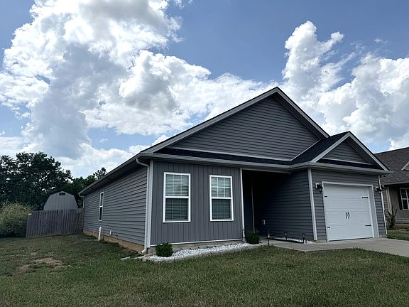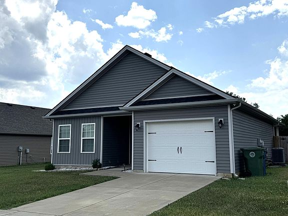 New Price!! Welcome to your new home at the Fairways at Pleasant Valley! Built in 2019, this immaculate, luxury vinyl plank flooring home features 9 ft ceilings and a split design with two bedrooms, one full bathroom, a laundry room in the front, and a primary suite with a full bath and walk-in closet in the back. The home features an open floorplan with stainless appliances and all-white cabinetry in the kitchen along with can lighting. You will love relaxing on the covered patio overlooking the large, flat, fenced backyard with wood and wire privacy fence which offers amazing views of the wooded green space. A brand new 8 ft x 10 ft custom made storage shed is included, along with new bath fixtures and fresh paint throughout! Schedule your showing today before it gets away!