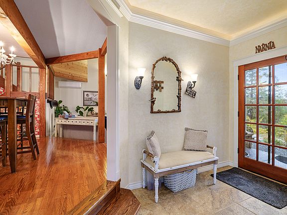 Discover your own private oasis on 10 private acres with this custom 3-bedroom, 2-bath home that offers incredible valley views from the cozy living room complete with gas fireplace for those cold winter nights. Retreat upstairs to the master suite, complete with a sitting area and a luxurious ensuite bathroom complete with huge tile shower and heated floor. The second upstairs bedroom and a convenient downstairs guest bedroom and bathroom ensure comfort and flexibility for family or guests. Outdoors, enjoy the tranquil patio with a stunning waterfall, a fenced garden area with raised beds, and a separate finished shop. With plenty of parking, this property combines privacy, luxury, and convenience—perfect for anyone seeking a peaceful getaway!''