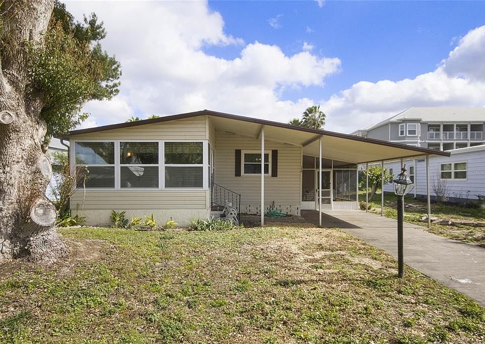 This property presents a great fixer-upper opportunity, allowing you to customize and infuse your own taste into this charming space. 2-bed, 2-bath property in a vibrant 55+ community, just a short distance from Disney World. Features include a covered patio, carport, separate storage and laundry room. Enjoy low HOA fees and access to amenities like a golf course, tennis courts, shuffleboard, and a community pool. Conveniently located near restaurants and shopping plazas. The perfect blend of leisure and convenience awaits.