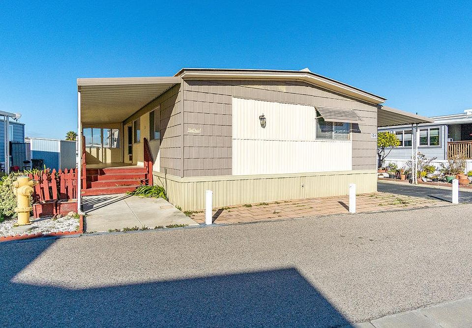 Great location, gated 55+ community, close to highway 101. This unit is larger than others on the market and priced to sell. New carpet, and flooring. Master bath features a custom installed wall in tub, with all the keys and features, ideal for elderly or muscle massaging, and simple to enter and exit, with no risk of falling! Complex requires approval of any buyer(s) as part of escrow. All cash or Chattel Financing only. Seller will pay the mandatory membership transfer fee of $30,600 at sale.