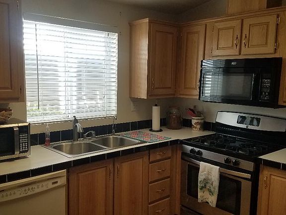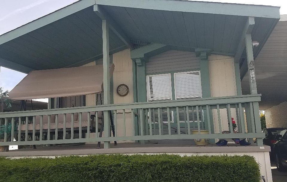 Beautiful Coach! 2 BR, 2 bath vaulted ceilings, skylights, blinds, front & rear decks, large storage shed. Extra large carport - room for 3 vehicles. Beautiful laminate flooring. Monthly fee of $371 which covers Common Area, Security Gate, Common Area Insurance, Management Fee., Common Area Electricity.