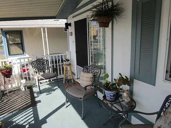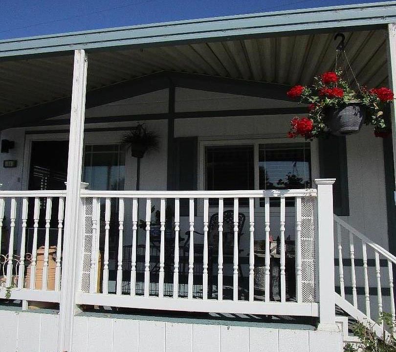 SENIOR PARK 55+ - GREAT LOCATION. CLOSE TO GATED EXIT. PORCH FRONT & REAR. BACK YARD FOR YOUR ENJOYMENT. OWNER HAS DONE THE FOLLOWING IMPROVEMENTS IN THE PAST 4 YEARS: ROOF REPLACED, LAMINATE FLOOR IN LIVING AREA, RENOVATED KITCHEN W/NEW ISLAND, SINK AND PANTRY, FITTED HALOGEN LIGHTING IN KITCHEN, ALL KITCHEN ELECTRIC APPLIANCES REPLACED, VINYL FLOORING IN KITCHEN ARE FITTED. FORMICA TOPS IN KITCHEN & BATHROOMS FITTED, CUSTOM PAINTING IN MAIN AREAS & BEDROOMS, REPLACED FLOORING IN FRONT PORCH & REAR DECK, REAR YARD IMPROVED. KITCHEN SHOWS BEAUTIFULLY. BUILD-IN BOOKCASE, DOUBLE PANE WINDOWS, VAULTED CEILINGS, 2 SHEDS, CEILING FAN. TANKLESS HTWH. NO SPACE RENT, SHARE IN PARK INCLUDED IN PRICE. MEASUREMENTS ARE APPROXIMATE, BUYER TO VERIFY.