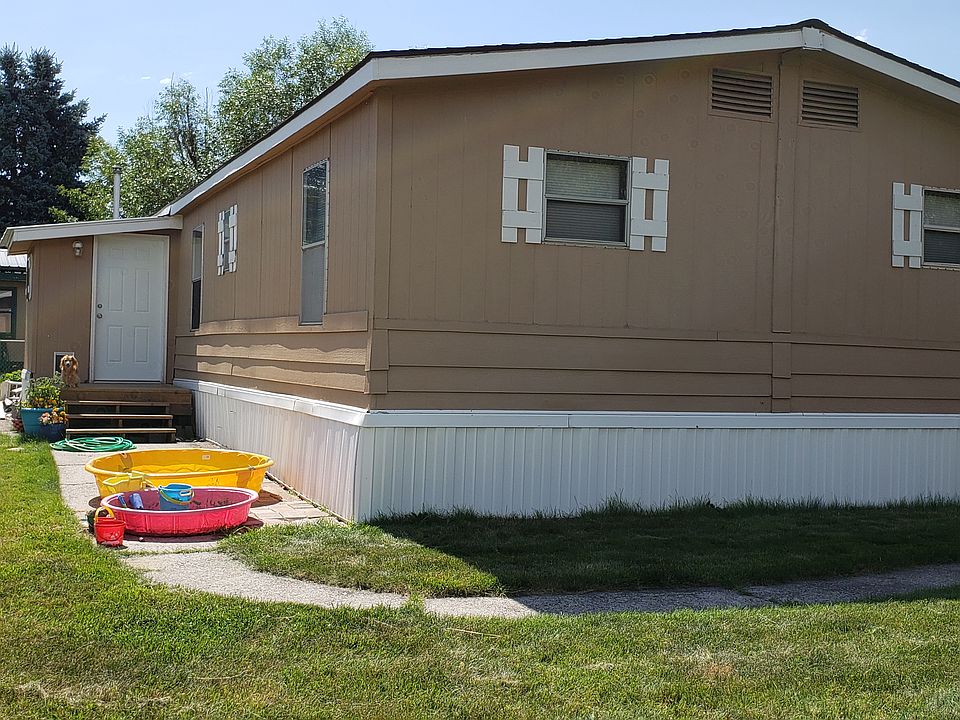 Spacious double wide mobile home on enormous fenced corner lot in Covered Wagon Mobile Home Park. Large master bedroom with walk-in closet and beautifully remodeled master bath with custom cabinetry. Cute kitchen with new stove and dishwasher. New flooring in two thirds of the house and fresh paint in all of the bedrooms. Home is directly across from the mailboxes, a large park, and extra parking. Covered Wagon is bordered by 19th street, Durston, and Oak and is within walking distance of Smith's shopping center. Pets are allowed. Affordable living in Bozeman. Great option for young families or students. Must be approved by Covered Wagon before sale of house. Lot rent is approximately $400/month and includes water which is metered.