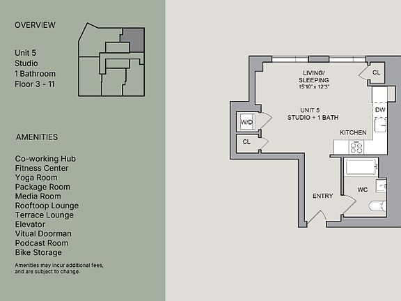 - Exterior features: Bicycle storage, Broker Exclusive, Fios Available, Garden, Guarantors, Leed Registered, Media Room, No Fee, Package Receiving, Public Outdoor Space, Recreation Facilities, Roof Rights, Roofdeck, View Type: Skyline View