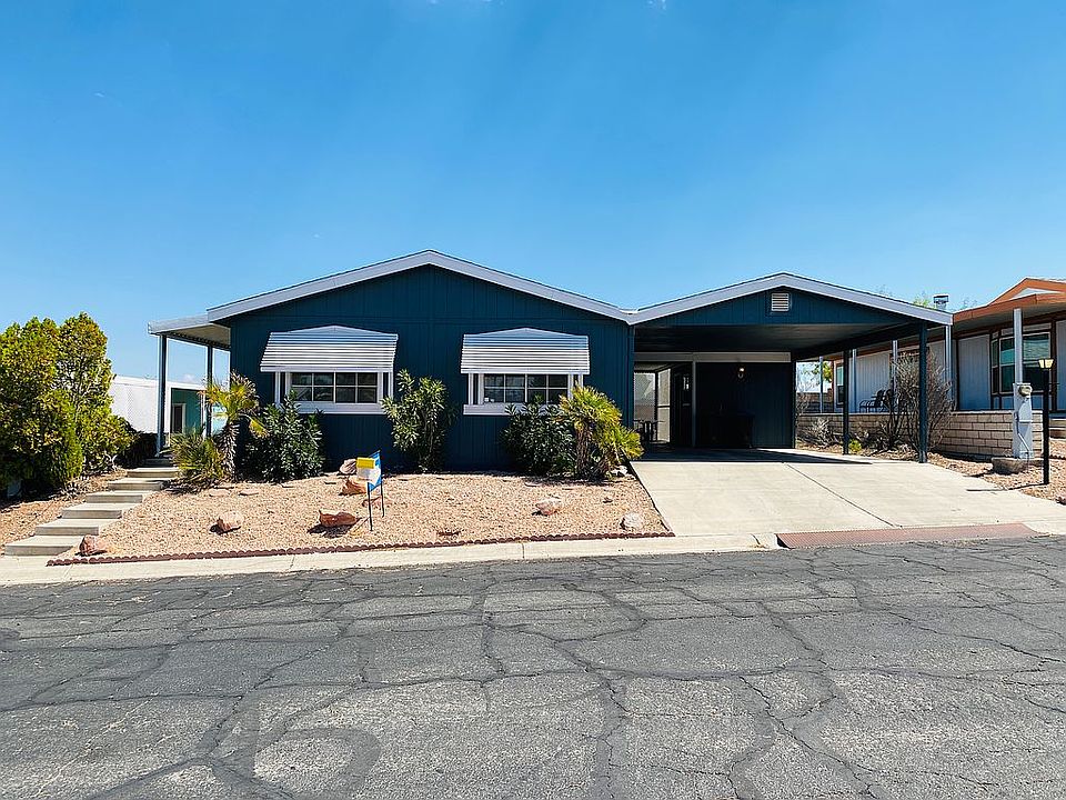 24Wx56L | 3BR, 2BA | Space Rent $1,102 | 55+ | 1992 DOES NOT COME WITH LAND COMPLETELY UPGRADED 3 BD 2 BA w/ VIEWS in Henderson's Elite Gated 55+ Community! This beautiful 3 BD 2 BA is 1,344 sq. ft., and has been COMPLETELY UPGRADED, with NEW flooring throughout, NEW paint inside and out, NEW fans and MUCH MORE! This home has a split floor plan with a spacious living room with lots of windows for natural light, a semi-formal entry, a coat closet and high-vaulted ceilings. There is a dining room off the living room and kitchen, with NEW hanging pendulum lighting. The open kitchen has ALL NEW quartz countertops, an eat-in counter, all matching, stainless steel appliances and lots of cabinet and counter space. The primary bedroom has an en-suite bath with a garden tub/shower combo and a linen closet and the guest bath has a NEW toilet and also has a shower/tub combo. Both shower/tub combos have been refinished and both baths have BRAND NEW quartz vanity tops. This home has a fully equipped laundry room, with washer and dryer, a shed, an extra wide, covered, 2 car carport with side by side parking and a huge yard that overlooks the mountains, Railroad lake and Cornerstone park! CALL US NOW or click below to schedule an appointment! * Rent does not include sewer, trash and water. Information on this home is believed accurate but should be verified by buyer before making any decisions. This home is NOT FOR RENT. It is FOR SALE ONLY.