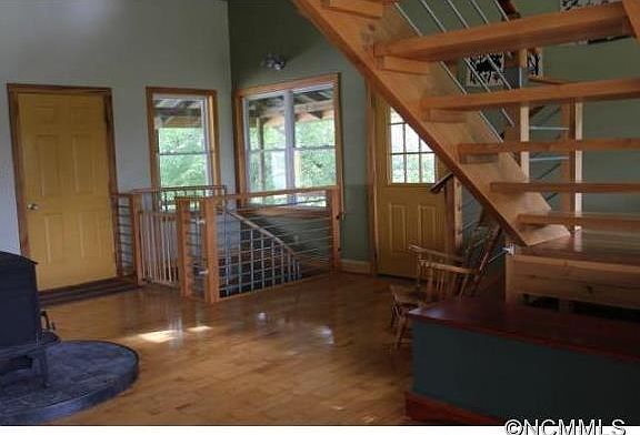Contemporary mountain home, 3BR/3BA in main house with a full apartment over the garage/workshop (now artists studio). Long range views from both units. Main house has covered wrap porch and deck off Kitchen. Two Master suites with another BR downstairs. Worshop and shed. Garden site. Part of Wise Acres Community. Ownership of private home and acreage and shared ownership of additional 55 ac.