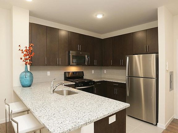 Open concept spacious 2 bed 2 bath with storage unit, comes equipped with stainless steel kitchen appliances(gas range, dishwasher, microwave and refrigerator ) and for added convenience there is also a full sized washer and dryer inside the unit. Gorgeous hardwood floors through out except for the bedrooms which have neutral plush carpeting. Kitchen has 42 inch upper cabinets for extra storage and granite counter tops and a tiled back plash. Both bathrooms have granite counter tops and tiled flooring and shower/bath walls. There are 2 gyms onsite , a media room, billiards room and a dog park. ($25 per month amenity fee) . Landlord pay water, sewer and garbage charge Tenant pays gas and electric