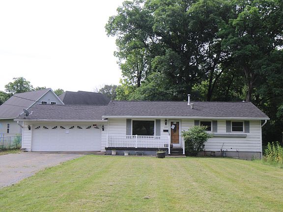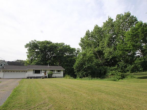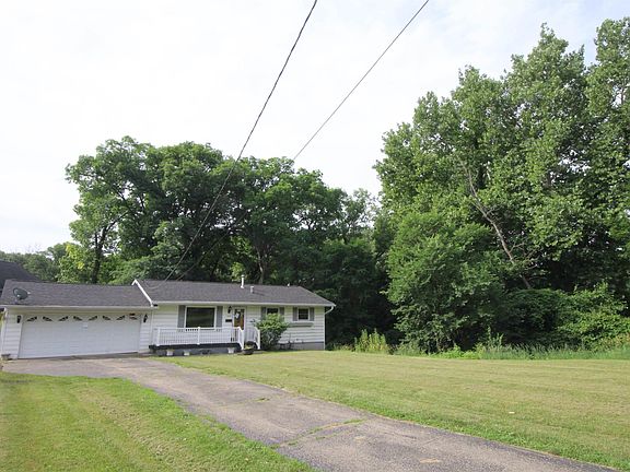 Great opportunity to put your DIY ideas to work! This 2BR ranch sets on nearly a 1.5 acre wooded lot. Spacious living room with large picture window. Kitchen is open to dining area with picture window. Bathroom features oak corner vanity and medicine cabinet. Double closets in both bedrooms. Large lower level family room with woodburning stove. Replacement windows, HE furnace and fully applianced. 2 stall garage has slider on back to covered patio. Fenced yard with utility shed. Home to be sold as is, no warranties expressed or implied. Manager for seller is a licensed agent. 2 addendums in associated docs must accompany offer. Seller needs minimum 3 weeks for closing.