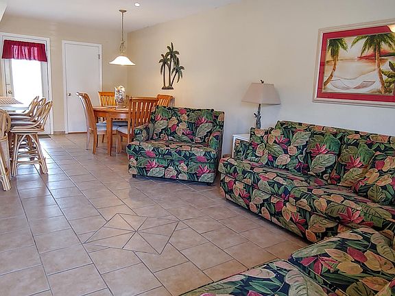 If you ever wanted to have a HEATED POOL steps away from your Beach Home... HERE IT IS !!! This 2 BR in a Gated Resort has a Wonderful Location to walk out to the Seasonal Heated Pool that you don't have to maintain. The Laundry Room has been moved upstairs, so now you have a large Storage Closet Downstairs. You are right across the street from the Mini Golf. There are 11 Pools and one of them Gulf Front with the Beach House and Snack Bar. You like Tennis, there are 4 Tennis Courts. You have 2 Private Parking Spaces in front of your unit. You own your Front Yard & Back Yard. NO ELEVATORS. Age, SF, and Dimensions are approximate... please verify if Important.