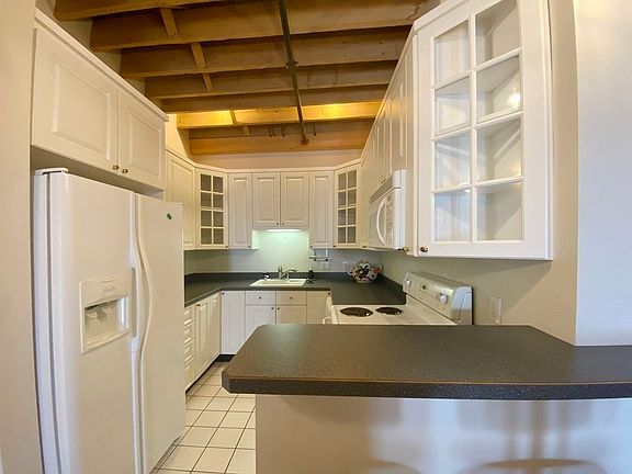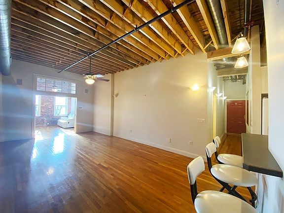 AVAILABLE NOW, Free May Rent! Seeking a true 1000sf+ LOFT living experience? Welcome to 150 Liverpool Street ~ a boutique loft building blocks to Maverick MBTA station, Harbor, parks + restaurants! This 2 bed/ 2 bath 1040 SF unit is filled w/character~ original 11' beamed ceilings, hw floors, exposed brick walls and industrial ductwork. The entry hall has large closet, full bath, and leads to an expansive open concept living/ dining room. The L shaped kitchen features a breakfast bar, ample cabinet storage and water dispenser in the fridge. The first bedroom or office features french doors and two large closets with additional storage above. The master suite at the other end of the unit has an en suite full bath and large closet. Laundry and a linen closet are in the hall. Central AC, Nest thermostat, LED lighting and surround sound. Common deck space for the building, optional rented PARKING. Pets considered! Credit over 650, First months rent, one month security, 1/2 Broker fee