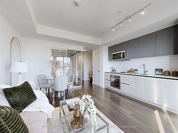 Once the Weston Bread Factory, this heritage landmark was reborn just over two years ago as "Wonder Condos" - a bold, urban statement in the heart of Leslieville. This one-bedroom suite is more than a home - its a canvas. Thoughtfully designed with style and function in mind, its flooded with natural light and built for city living. The open-concept living and dining area flows seamlessly onto the crown jewel of the unit - a 161 sqf. east-facing terrace, your private sun-drenched escape perfect for morning coffee, evening drinks, or soaking up city vibes with unobstructed views. The sleek kitchen features engineered quartz countertops, ceramic backsplash, and integrated appliances, while the bedroom offers sliding doors, ample closet space, and a versatile study nook for work or reading. This is a home you'll actually love coming back to - ideal for first-time buyer, pied-à-terre, or downsizers looking for style and practicality. Leslieville lifestyle at your doorstep: cafés, bakeries, breweries, boutiques, and bars. TTC, Lake Ontario, Distillery District, Canary District, and St. Lawrence Market are all a short walk away.