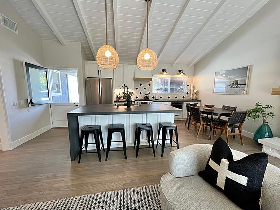 Downtown Beauty. Enjoy easy access to everything San Clemente has to offer from this perfectly located home base. Completely renovated house in the heart of San Clemente Rent a completely furnished, modern beach cottage just a 5-minute walk to downtown retail shops, restaurants, and fine dining. Linda Lane Beach Trail and Beach Park is a quick 5-minute walk. You can walk to the San Clemente Pier in 10 minutes. Looking for renter for 30 days or longer. Major remodel just completed with all new kitchen, bathrooms, floors, and paint. Three dedicated parking spots for your cars on the spacious driveway. This open concept home has been professionally designed in a mid-century beach vibe with all the amenities to make you feel at home. The great room includes a brand-new kitchen with new LG appliances (dishwasher, drawer microwave, oven range, full size French door refrigerator) and new cabinetry throughout. The comes with a dedicated washer and dryer as well as central heat and AIR-CONDITIONING. The living area has a cozy custom sectional with downlike cushions and swivels chairs that create a wonderful social area and a keen TV watching experience in front a fireplace. The primary bedroom has its own private ensuite and adorned with luxury bedding on a king bed. Bedroom two has the option of either a king size bed or (2) single beds depending on the tenant's needs. Bedroom three or what we like to call the "Flex Room" is private with its own entrance and set apart from the house. It has its own half bathroom, queen bed and a desk space for working. Perfect for use as an office, teen hang out, or a nice private bedroom. There is an outdoor shower with hot/cold running water available for those sandy trips back from the beach. The back deck perched above a small canyon with a nice outdoor seating area gives the feeling of being in a treehouse. Below is a set of four Adirondack chairs to enjoy the serene surroundings. Walk directly to the beach trail or the San Clemente Pier from the house. Jump on the free trolley around town and to the outlets for more shopping, restaurants, and movie theatre. Short ride to world class surfing beaches like Trestles and San Onofre. The house is supplied with beach towels, beach chairs, and a couple soft top surfboards. San Clemente is located between San Diego attractions and Disneyland, all within a 45 min drive. Five-minute walk to San Clemente train station 2 blocks from I-5 Bike path and bus. Free trolley downtown and to outlets 3 Parking spots available on property! Perfect for corporate housing, traveling medical professionals, snowbirds and summer vacations, remodels and home restoration. 3 month minimum. Open to a long-term lease. Deposit required.