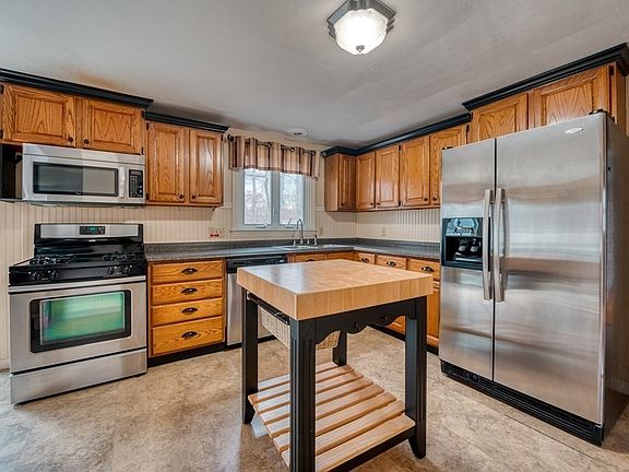 • Features: Flooring - Laminate, Dining Area, Breakfast Bar / Nook, Deck - Exterior, Exterior Access, Recessed Lighting, Stainless Steel Appliances, Gas Stove, Lighting - Overhead