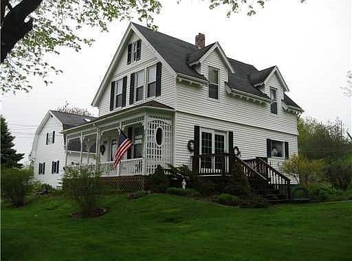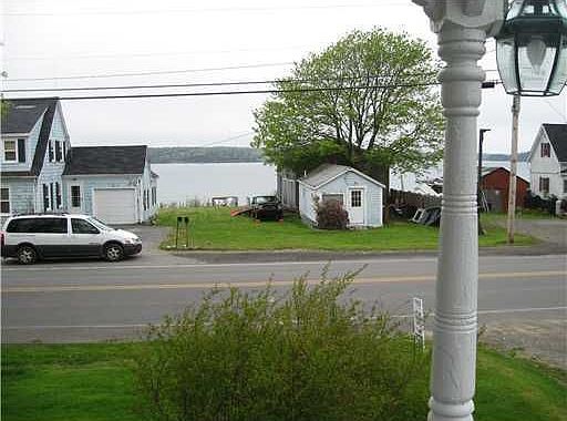 #1801) 150 Main Street, Lubec: Well kept NE Farmhouse with country porch. Expansive landscaped yard and gardens with some views of Johnsons Bay. Large 2 bay garage with studio or apartment potential overhead. Home is move-in ready and walkability to town is a plus. $149,900.