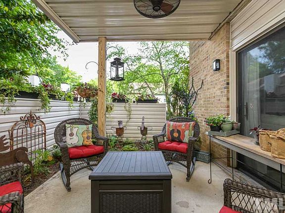 Gorgeous & convenient! RENOVATED 1st floor condo located in the heart of DOWNTOWN Cary, w/in walking distance of library, restaurants, park and shopping. Interior features a cozy fireplace & open layout for seamless living. Owner suite has plenty of closet space & a lovely niche for reading chairs or a desk. Full bath has hideaway medicine cab. Covered entranceway invites you & your guest to enjoy the PLUSH PRIVATE COURTYARD PATIO; great place for relaxing or entertaining. Re-designed & remodeled in '16.