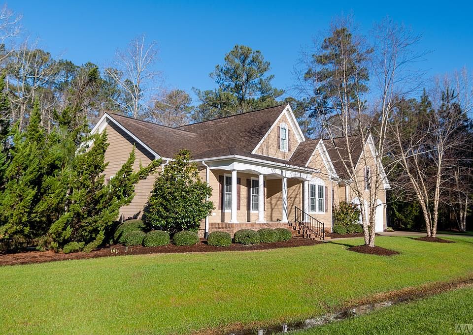 Custom home in gated golf and marina community in NE NC. Newly decorated & paint wood floors, new whole house generator, whole house R/O drinking water. Easy breeze porch, and stone walled patio. Beautiful private property with great landscaping. picture window in living room makes it feel like a tree house and large porch overlooks two levels stone walled Patio and garden. Too many extras to name. Albemarle Plantation besides a 18 hole Dan Maples Golf Course has a Marina on the sound, also has Tennis, Bocce, Community Center with excise gym, Pool and two restaurants. Call agent for appt.