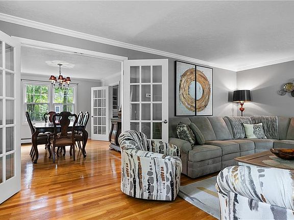 Nestled back from the road, this well-built and meticulously maintained home offers a serene retreat just moments from Barrington Beach and the heart of town. Walking distance to Primrose Hill Elementary, the Middle School, and the High School. Enjoy access to tennis, basketball, and playing fields across the street. Step inside to discover a thoughtfully designed interior that exudes comfort and sophistication. The first floor offers beautiful hardwood floors, an open kitchen, two separate living spaces, dining room, and a slider to your back deck. Out front, enjoy coffee or cocktails on your oversized farmers porch. Upstairs the spacious primary suite features an en suite with beautiful tiled shower and a huge walk-in closet. Three additional generous sized bedrooms and a full bath complete this floor. The property boasts an oversized two car garage, perfect for housing vehicles and offering additional space for storage or a workshop. On the bottom level, you will find a huge unfinished basement with tons of expansion possibilities. The lush lawn and garden area are perfect for outdoor activities, gardening, or simply relaxing in your private oasis. Whether you're looking to entertain or enjoy quiet family time, this home provides the perfect setting. Don't miss the opportunity to make this your dream home!