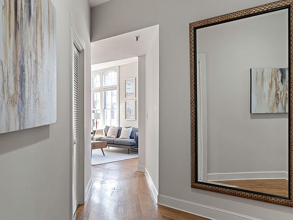 Set in the heart of the Old Port, just steps away from the cobblestone that line the streets, this sunlit Mid Century modern condo is at the heart of everything that defines the incredible city of Portland. Art galleries, shops, award-winning restaurants, breweries and cafes decorate the sidewalks. On the outside, this iconic brick building was built in 1845 and designed by Francis Henry Fassett & John Calvin Stevens, two American architects in Maine who influenced the look of the city. Inside you'll find a well-appointed, freshly-painted 2 bedroom unit with stately high ceilings and floor-to-ceiling windows. The light streaming into the living and dining room from this corner unit is unlike any other. Expansive city views of the vibrant streets below are visible from nearly every room. The orientation of the bedrooms not only captures beautiful morning light, but are also set down the hall from the main living space offering both privacy and tranquility. The Storer Building offers wonderful building amenities including secured lobby doors, a passenger elevator, onsite laundry facilities and one parking space in the lower-level parking. If you have ever dreamed of living the city life, this luxury condo will certainly entertain.
