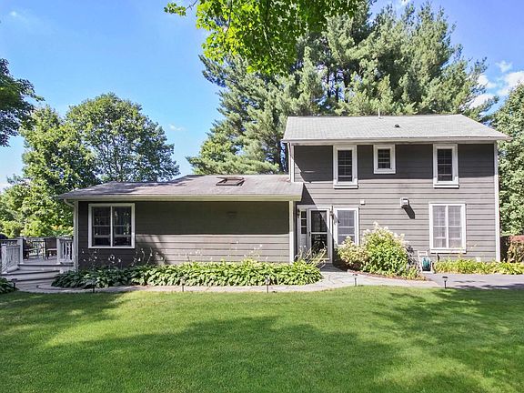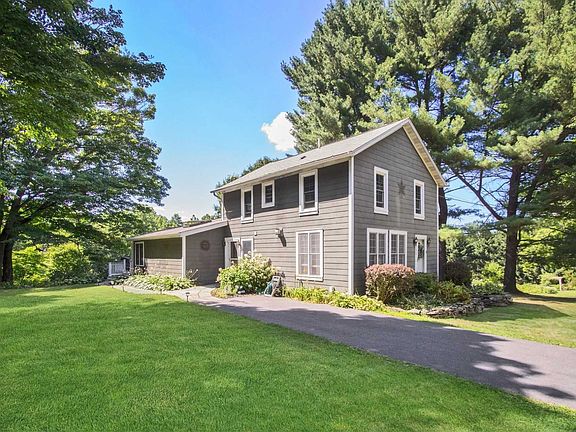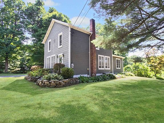 1870 historic tavern (according to local lore) transformed into modern farmhouse chic with a barn like 2 car garage plus a 425sf loft upstairs all sited on 1.7 acres bodering protected land. This 3 bed, 2 bath home with original wide plank floors is flooded with light from 23 oversized windows downstairs and 8 sunlit windows upstairs. Nice high ceilings, crown moldings and an open eat-in kitchen with soapstone countertops, quartzite back splash, maple cabinets with vintage style glass, and LG appliances, including a stackable LG ThinQ washer and dryer, will make this a favorite spot for great food and drinks to enjoy the light and views. All appliances are less than 3 years old. The area is heated and cooled with a split but has beautiful doors leading to a Trex deck overlooking the woods and parklike backyard and oversized windows so you can allow nature to provide its own AC. A downstairs full bath is windowed with tub/shower, marble vanity, vintage mirror and wide planked floors. The rest of the first floor offers a den with gas burning fireplace and built in book case. From the den, french doors open into the dining room with vintage style sconces. The dining room flows gracefully into the living room with vaulted ceilings and a split for cooling and heating. Nice, open, airy. Upstairs has 3 bedrooms and a master bath. You enter the master bath through an antique door with origninal lock to find a marble topped double vanity, marble basket weave floors, a frameless oversize shower with subway tiles, and rainfall showerhead. The master bedroom has 2 antique doors, wide plank floors, plenty of light and a split for heating and cooling. The second bedroom has an antique door with a built in offie space. The third bedroom has an antique door and is used as a walk-in closet but can easily be returned to its orignial use. The basement is clean, dry and offers ample storage space. There is also a small attic accessible through a pull down door in the 2nd floor hallway. LIghts throughout the house are on dimmers. The 425sf loft above the garage has a letter for apporval and building permit for office plus full bathroom, ktichen sink and refridgerator. The 1.7 acres provides sweeping lawn, leading to a beautiful garden and potting shed. Pleny of room for a pool!