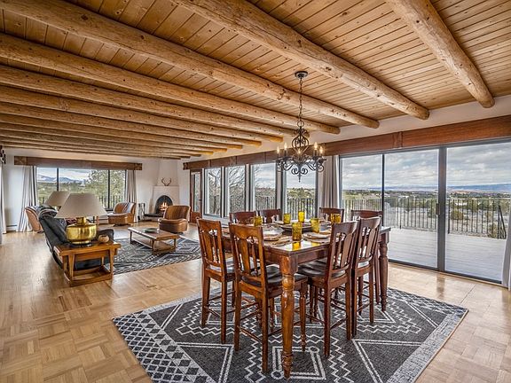 Incredible Views!, 3+ Acres, 3800+ sq ft, 4 Bed, 4 Bath, 2 Car Heated Garage with Shop, Hardwood Floors, Traditional Vigas, Views from Every Room, Huge Finished Basement with Kitchenette, and More! Welcome to 150 Monte Rey Dr South! This 3+ acre property is located within the highly-desirable Pajarito Acres community and includes incredible 360-degree views of the Jemez Mountains, Sandias, White Rock Canyon, and Sangre de Cristos. The home features a stunning living room featuring traditional vigas, hardwood floors, a kiva fireplace, and windows providing great sunrise views to the east, views of Los Alamos and the Jemez Mountains to the north, and sunset views to the west. The kitchen includes a stainless-steel refrigerator, a breakfast nook, and a coffee station to complement its east-facing views. A wrap-around deck provides you and your guests with great indoor/outdoor entertaining and dining opportunities. Upstairs, you’ll find the primary bedroom, bathroom, and study (or fourth bedroom). This private enclave includes balconies off both the bedroom and study to give you a birds-eye view over your 3+ acres. Two guest bedrooms and a full guest bathroom are available downstairs. The bottom floor has been recently renovated and includes a game room, kitchenette, laundry, half bath, and a huge family room with walk-out access to a concrete patio and the back yard. The back yard features a fire pit, and could also accommodate horse facilities or a guest house, if desired, as both are allowed by zoning and the covenants. An oversized, heated two-car garage features epoxy floors and a separate raised shop area with shop cabinets and a large, double utility sink. The structural beams remain exposed, allowing for additional garage and shop modifications, if desired. This great is sure to sell quickly, so schedule your showing today!