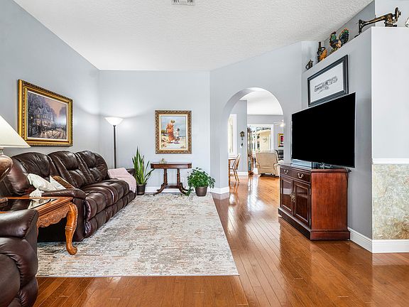This is the home you have been looking for! This beautiful 5-bedroom, 3-bathroom home offers the perfect blend of luxury and comfort, situated on a picturesque lakefront lot. As you step inside, you'll be greeted by an open-concept, split floor plan layout- that seamlessly connects the living, dining, and kitchen areas, making it perfect for entertaining.The kitchen features granite countertops, stainless steel appliances, an island and a breakfast nook (that over looks the lake), perfect for family meals and entertaining. The master suite is a private retreat with tray ceilings, two large closets, an en-suite bath with dual vanities, a soaking tub, and a separate shower. Step outside to your own private oasis! The lakefront backyard boasts a sparkling salt water pool (resurfaced 2 years ago, with a new salt cell just installed), a large patio with screened enclosure, and a cabana bath.